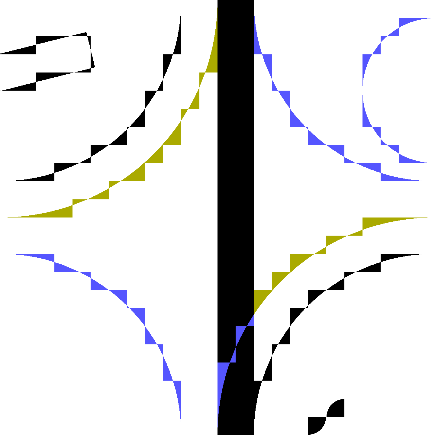 ![Back cover [The text is all afflicted with artifacts, suggesting the difference between a pixel font and its vectorized version. The track titles are in alternating yellow and blue, while the numbers and composers are black artifacts on white background. On the top-right is the artifacts of a frowning smiley.]