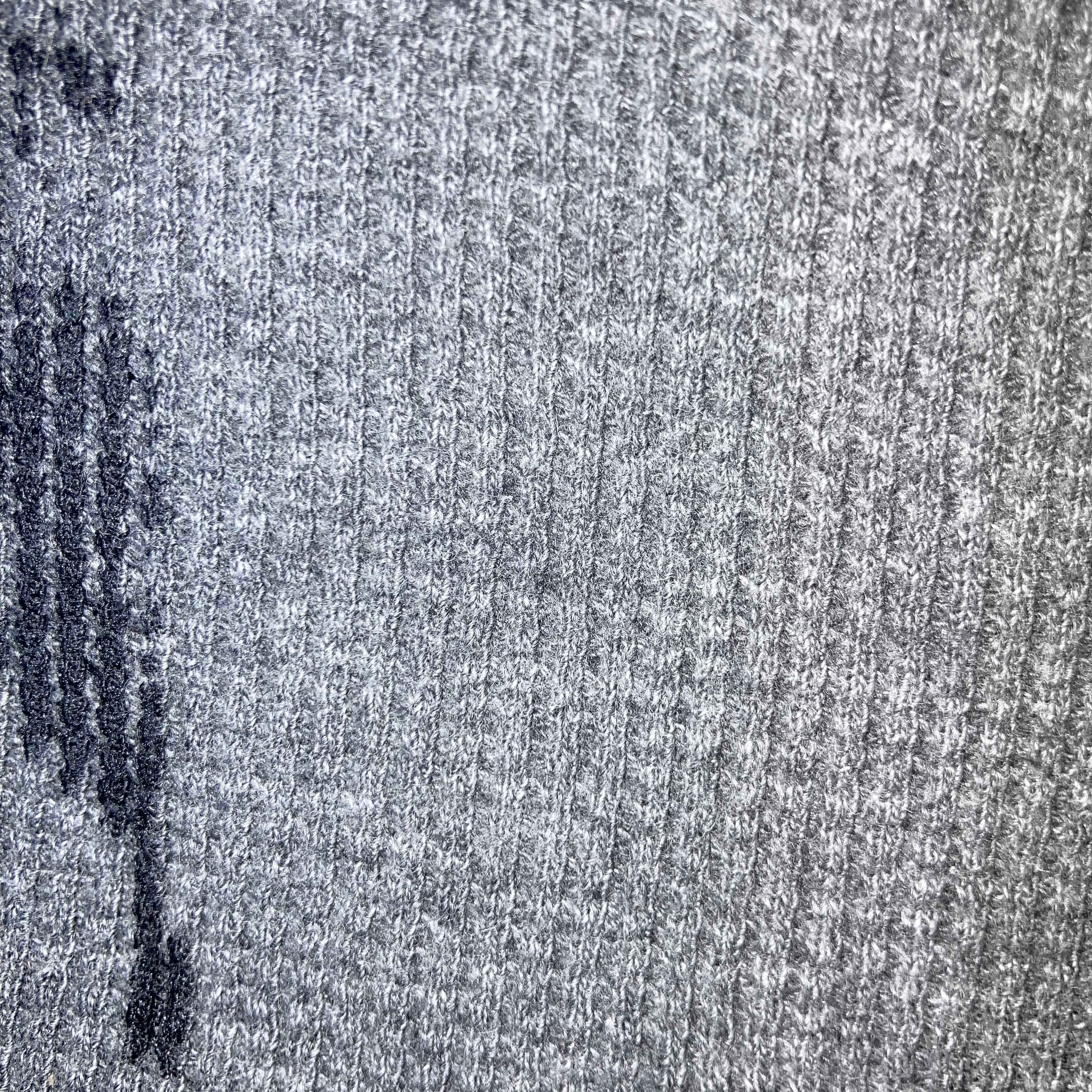 a gray waffle-fabric shirt with a water stain; the color saturation decreases from left to right