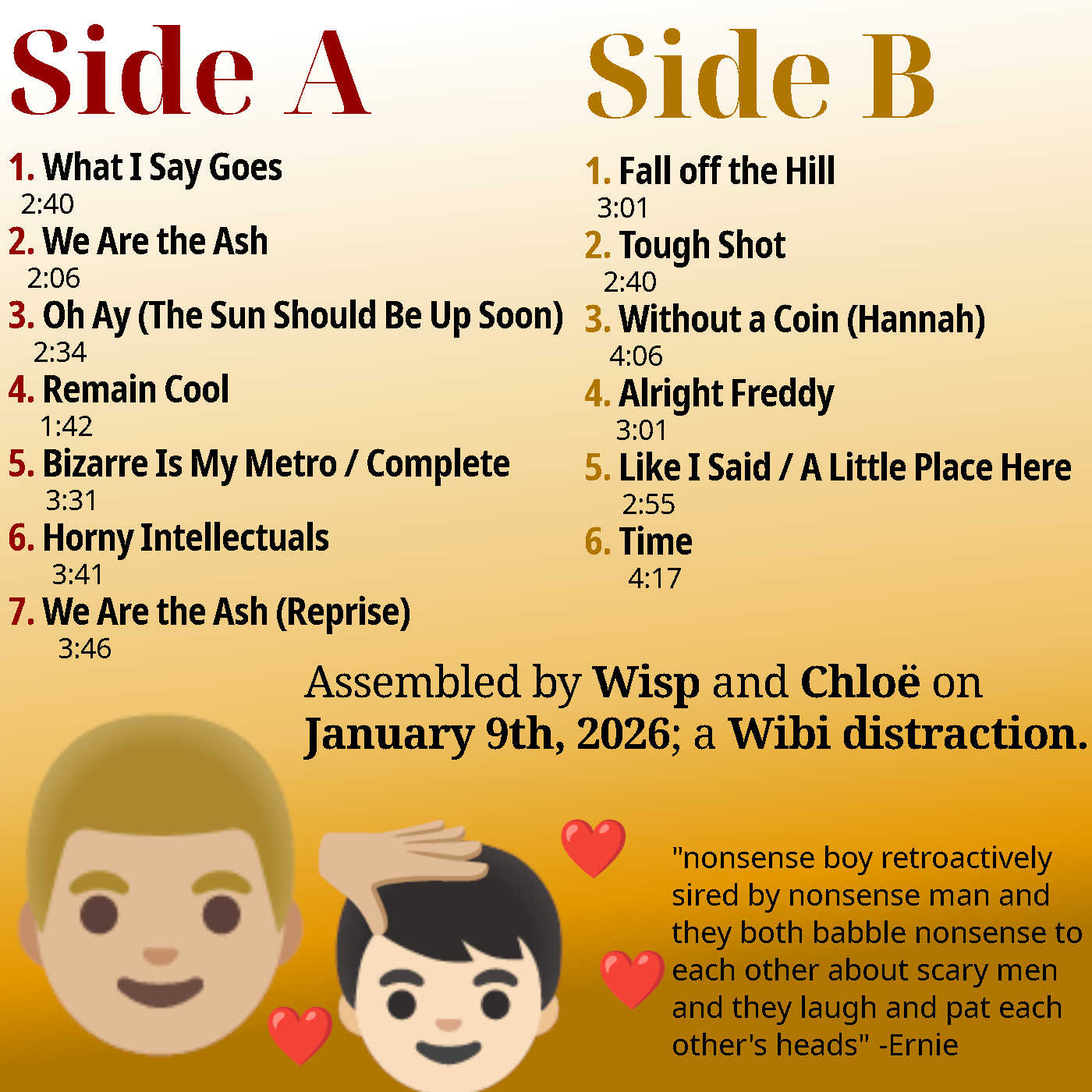 Assembled by Wisp and Chloë on January 9th, 2026; a Wibi distraction.