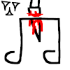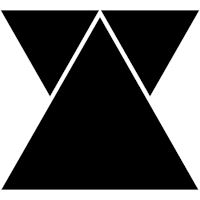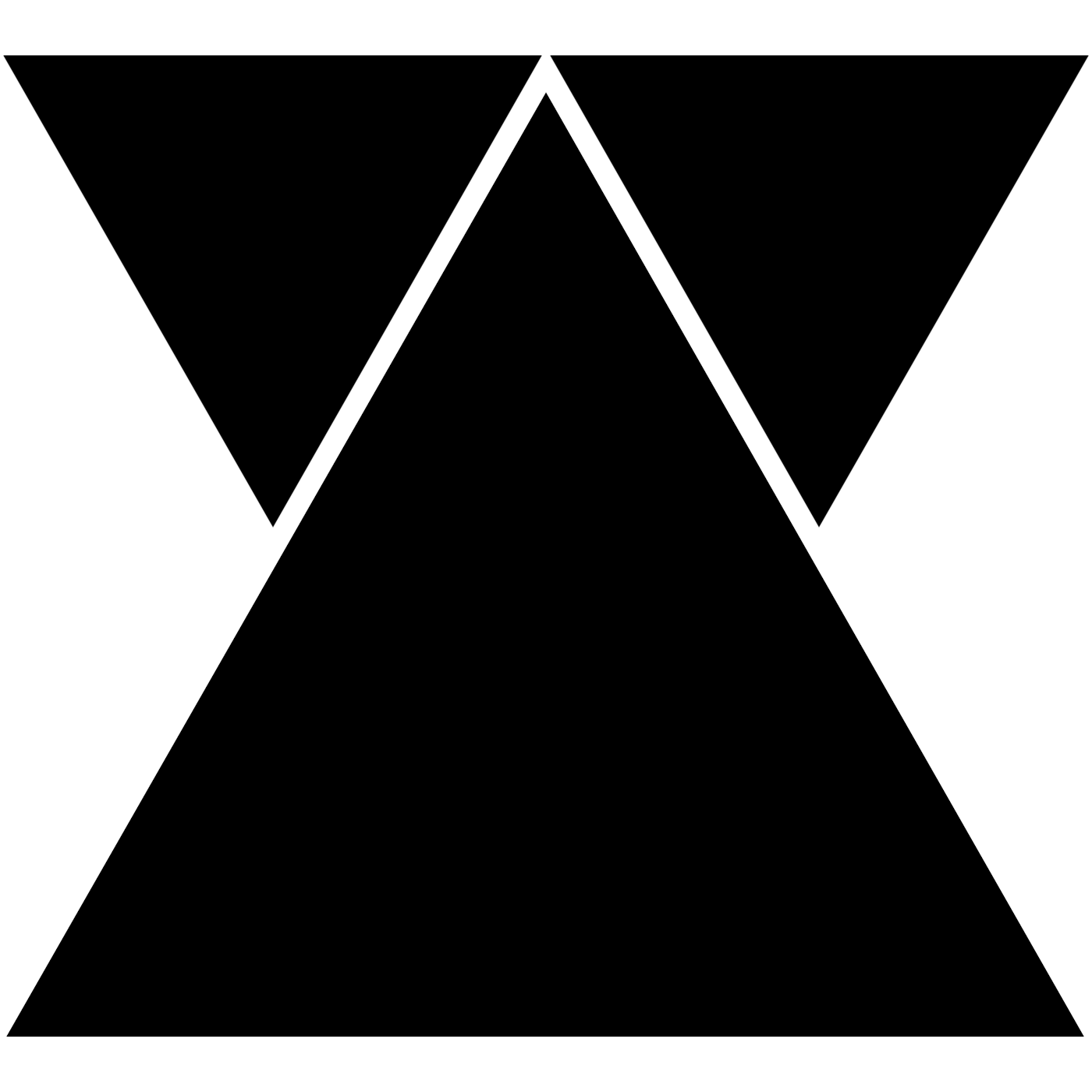 Two ajdacent triangles facing down, and filling the gap between them is the tip of a larger triangle facing up.
