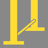 Abstract yellow-on-gray depiction of a hurdle with the bar set.