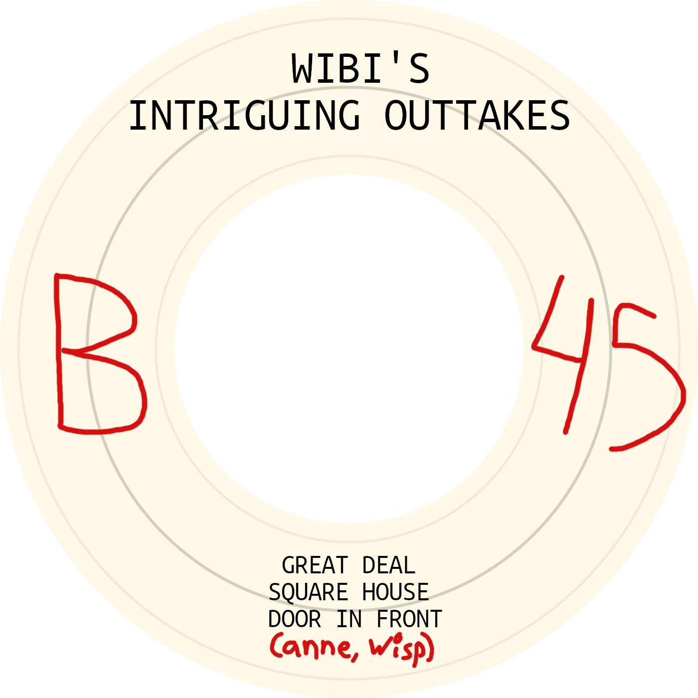 Composition: Wisp's remix of "Hey guys I made a device that", proposed as a drop-in replacement because she thought that song was too dull. Anne spoke and added the "producer's note" outro for Intriguing Outtakes.